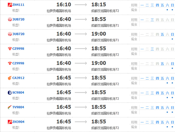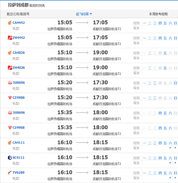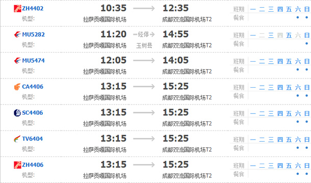 以上就是拉薩飛成都的航班時刻表,起飛時間,到達時間,及固定航班日期。